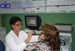 Brinda el servicio de entrenamiento a los pacientes que inician el uso de lentes de contacto blandos, tóricos y gas permeables; así como una variedad en aros. La confección de los lentes está confiada al taller de Laboratorios Ópticos de Panamá que se caracteriza por la alta precisión y calidad de sus trabajos.